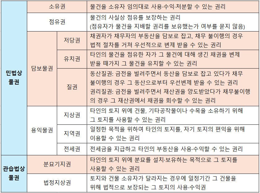 물권의 종류 이미지